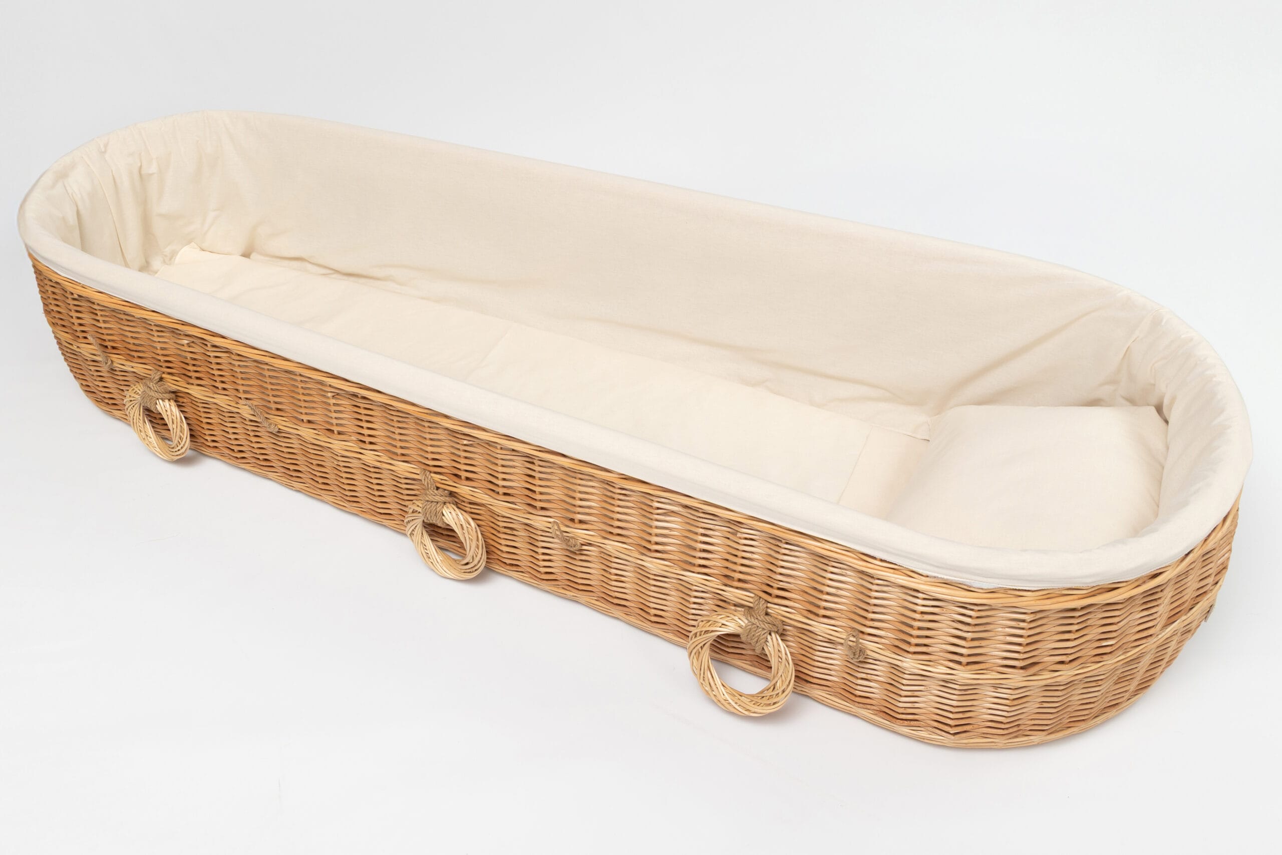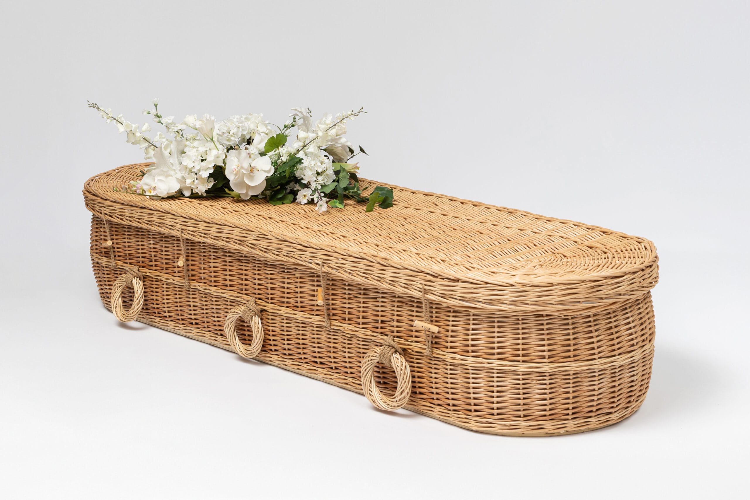 - Bij levering zit er een hoes om de uitvaartmand deze wordt meegenomen voor hergebruik.