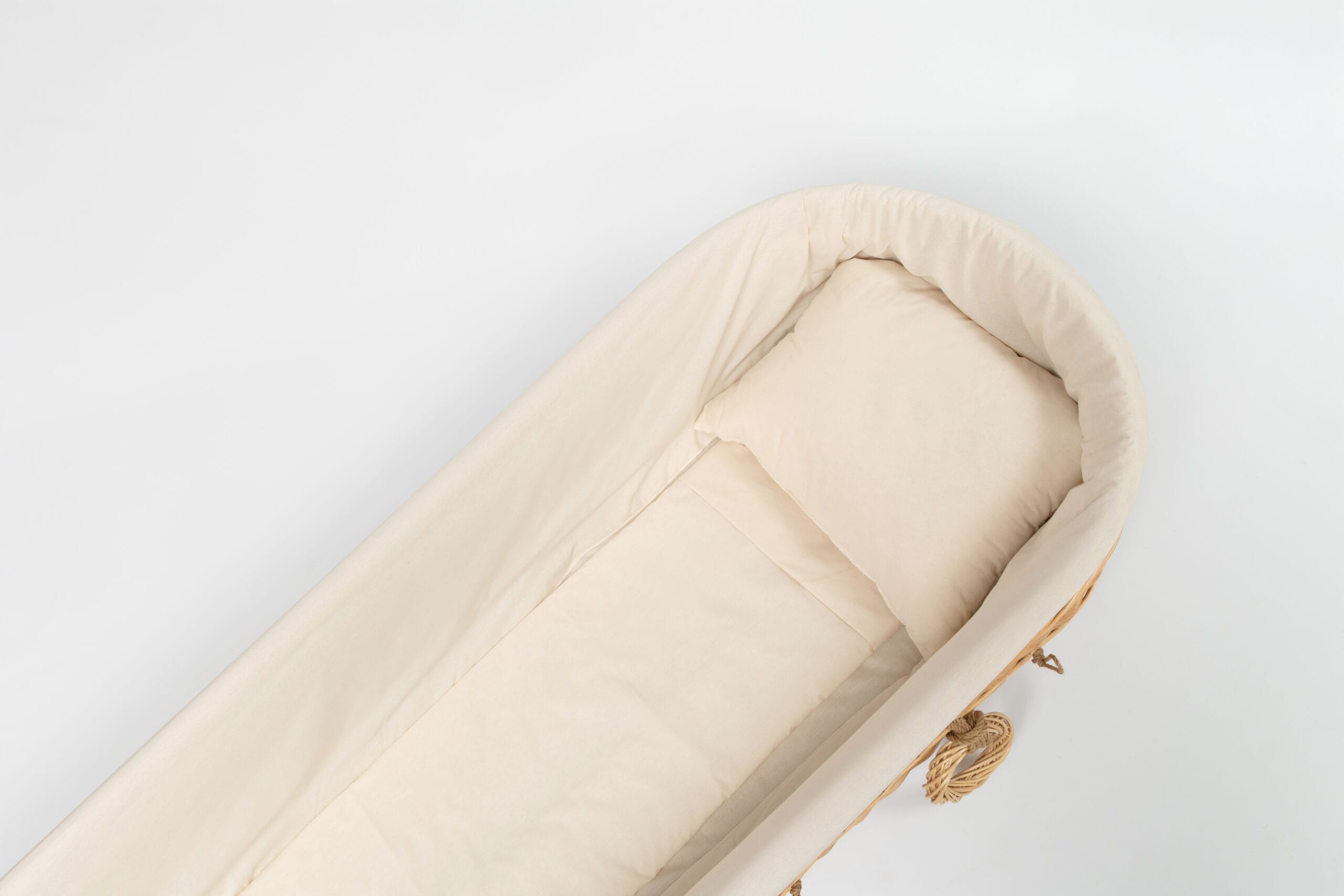 De uitvaartmanden zijn voorzien van een complete set katoenen bekleding die bestaat uit:
